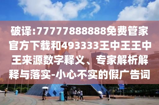 大家好!今天我們將針對一組關鍵詞進行深入解析和探討,以確保公眾在面對網(wǎng)絡信息時,能夠保持警惕,識別并避免受到虛假宣傳的欺騙,這組關鍵詞包括:“破譯:77777888888”、“免費管家官方下載”、“493333王中王王中王來源”等,我們將從數(shù)字釋義、專家解析解釋與落實等方面,為大家詳細闡述。