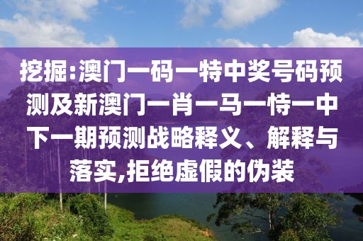關于澳門一碼一特中獎號碼預測及新澳門一肖一馬一恃一中下一期預測的戰(zhàn)略釋義、解釋與落實