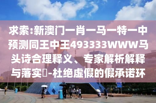 對于“求索:新澳門一肖一馬一特一中預(yù)測同王中王493333WWW馬頭詩-杜絕虛假的假承諾環(huán)”這一組合詞匯,我們應(yīng)該進(jìn)行合理釋義,明確其真實(shí)含義和背后的文化、社會背景,在行動上要有所建議: