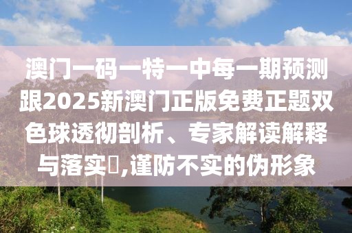 關于澳門一碼一特一中每一期預測、2025新澳門正版免費正題雙色球透徹剖析、專家解讀解釋與落實及謹防不實偽形象的重要提醒